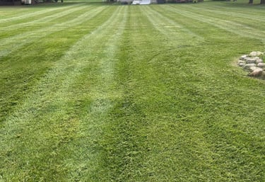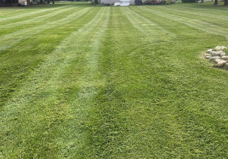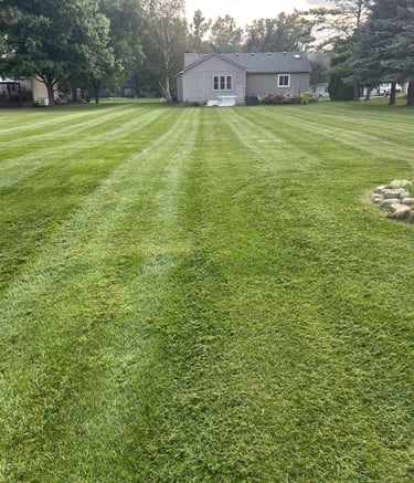 Regular mowing, edging, and fertilizing to keep your grass healthy and green.